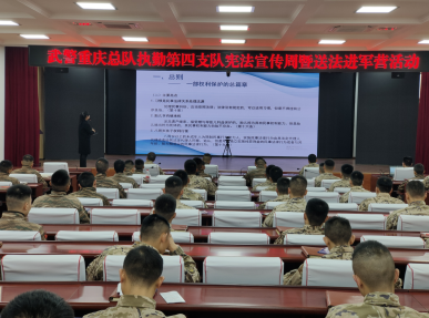 “每个人从出生的那一刻起无论上学、入职、结婚、生育买房、退休......都离不开宪法的保护。每个人都要为自己的言论负责,英雄和烈士不能任意被抹黑,谁挑战这种底线,就要付出相应的代价……12月4日上午,涪陵区司法局在武警重庆总队执勤第四支队开展“送法进军营”普法活动。
