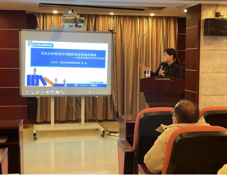 为迎接“12.4”宪法日到来,进一步引导医疗机构防范和正确处理医患关系,从源头治理医患纠纷,近日,重庆琪杰律师事务所张钰律师来到重庆郭昌毕中医骨伤医院为医护人员带来了一场生动、详实的专题讲座。