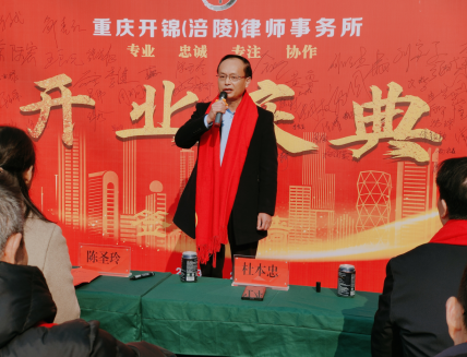 重庆市律师协会理事、区分会会长杜本忠在致辞中表示,开锦分所的成立,是涪陵律师行业的一件喜事,新律师事务所的加入,进一步壮大了我区律师行业队伍,为我区法律服务行业注入了新鲜血液。期待开锦分所将总所管理、质量和品牌优势与分所团队的专业能力、信息资源优势有效结合,把握新阶段,扛起新担当,展示新作为,作出新贡献,谱写开锦分所辉煌篇章!