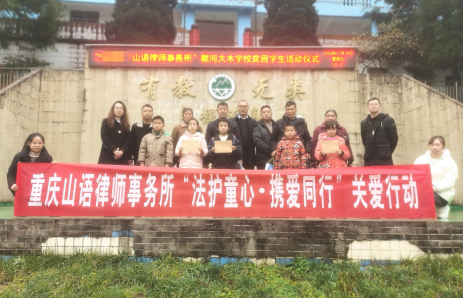 节前送温暖,真情暖童心。在新春佳节来临前夕,1月19日,重庆山语律师事务所主任游小强和肖露、蒋淋、游桂峰、林菁律师一道,冒着凛冽的寒风,来到偏远山区涪陵区大木乡小学开展“法护童心.携爱同行”走访慰问活动,为困难学生、留守学童送上新春的美好祝福及法律人温暖与关怀。