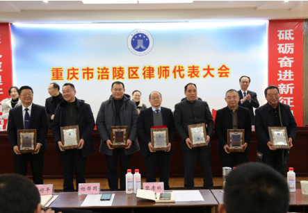 大会还为重庆市第七届律师协会涪陵区分会委员代表颁发了2018-2023行业管理特别贡献奖牌和证书。