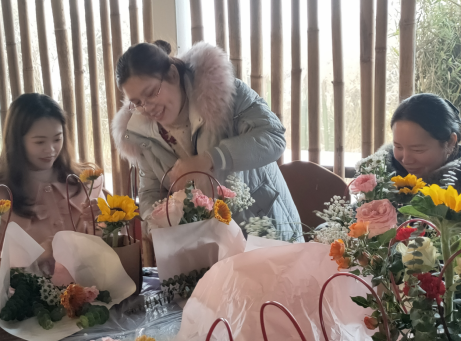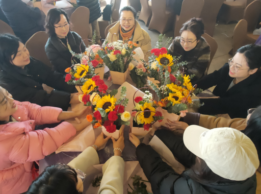 清新淡雅的康乃馨,娇艳似火的玫瑰,朝气蓬勃的满天星……一束束色彩斑斓的鲜花整齐有序地摆放在桌面上,浓重的花香瞬间扩散开来。“主花、配花,层次分明,颜色和谐”,插花活动现场,女律师们在花艺老师的指导下,大家一边创作,一边有说有笑,把原本普通的花草,经过修剪、层次搭配、点缀等步骤,变成了色彩斑斓、独具匠心的花艺作品,所有人都沉浸在自己创作的乐趣和插花艺术带来的快乐中。