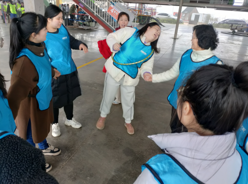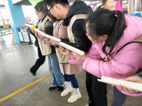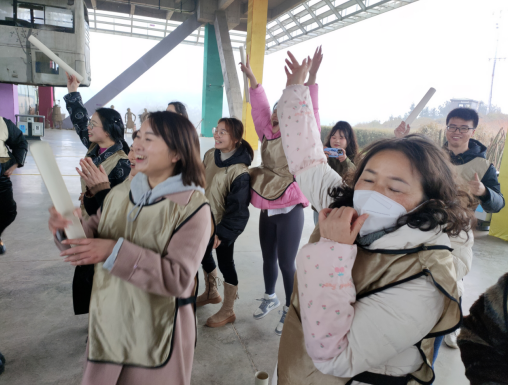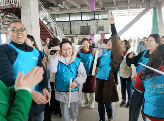 插花活动结束,趣味拓展活动登场。经过快乐热身活动后,教练将大家分成4个小队,自行选出队长。队长与自己的队员们集思广益一起想出队名、设计队徽、口号,大家喊着嘹亮的口号精彩亮相了。随着一声令下,4支队伍严格按照游戏规则展开了“不倒森林”“一圈到底”“水到渠成”等比赛项目的激烈角逐。各队各显神通,花式动作层出不穷,有的搭档默契十足,稳扎稳打,也有的手忙脚乱,“状况连连”。现场欢笑声、加油声、喝彩声充满了整个活动现场,观战律师也纷纷拿出手机饶有兴致地拍摄比赛的精彩瞬间。大家在紧张又欢愉的气氛中,获得了放松,与快乐“撞个满怀”。