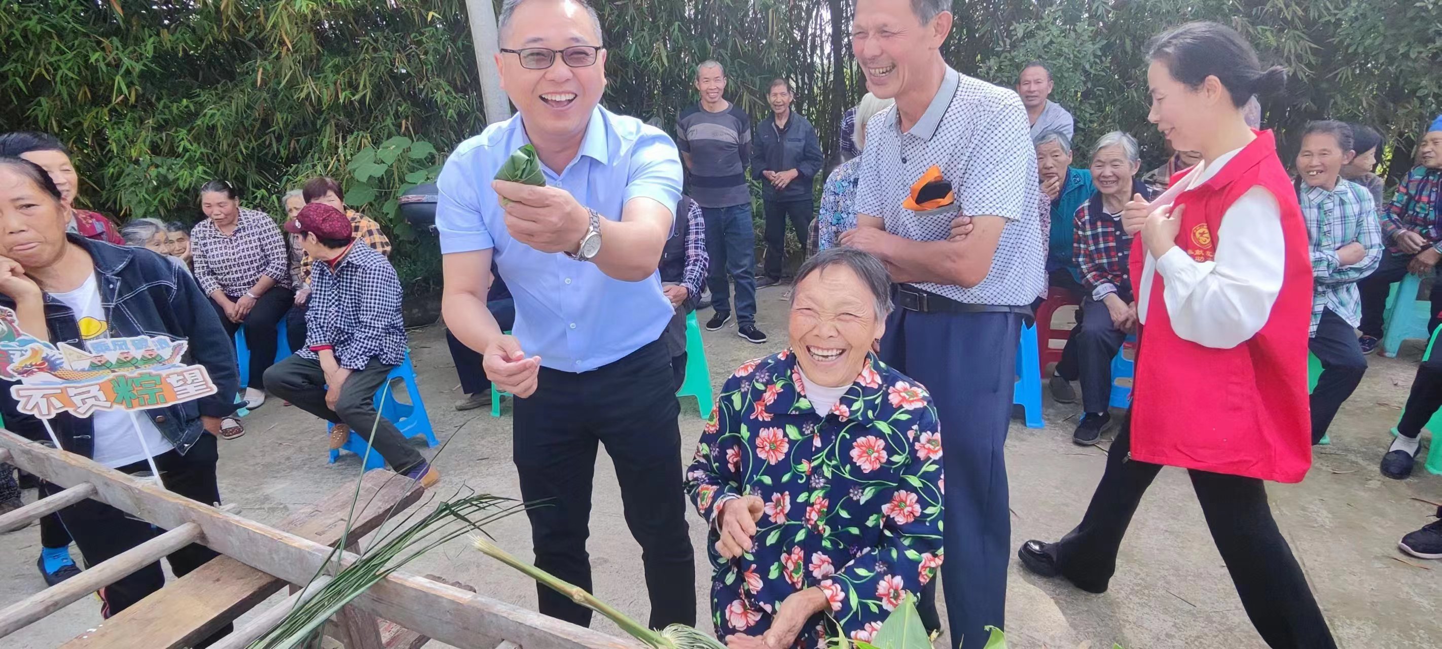 活动现场,游小强、杨浩律师和群众一起包粽子、唠家常