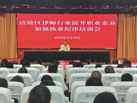 为全面加强涪陵区律师职业道德和执业纪律教育,提升职业素养,塑造良好律师形象,6月29日,重庆市涪陵区司法局、重庆市涪陵区律工委联合举办涪陵区律师行业提升职业素养、加强执业纪律培训会。涪陵区司法局党委书记、局长马居军作“坚持党建引领,强化规范管理,全面促进我区律师行业健康发展”主题授课,全区共130多名执业律师、实习律师参加培训。