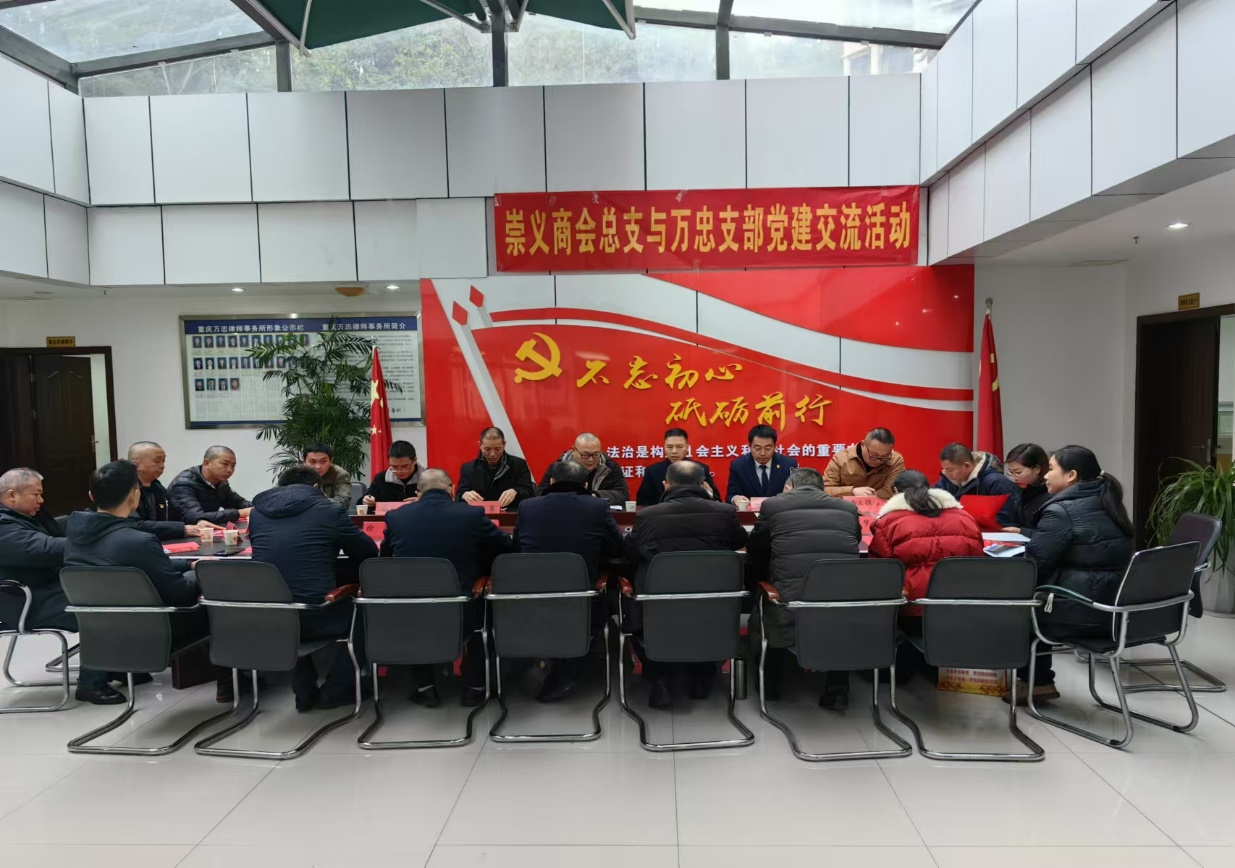 2024年12月6日下午15:00,在重庆万忠律师事务所会议室,崇义民协党总支、崇义商会与重庆万忠律师事务所党支部联合开展了党建交流活动。