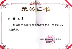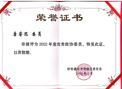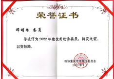 李福、唐睿思、邓明珠三位委员在2022年度履职工作中成绩突出,被区政协评为“2022年度优秀政协委员”。