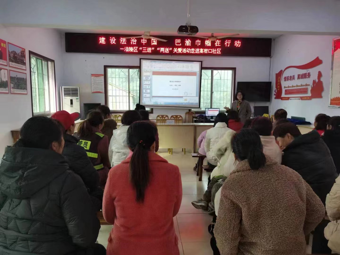 为庆祝第113个“三八”国际妇女节,增强妇女的法律意识和自我保护意识,提高广大妇女依法维权能力,营造共同维护妇女权益的良好氛围,近日,重庆佳士律师事务所罗洁律师走进涪陵区马鞍街道高岩口社区开展妇女法律知识讲座,给社区妇女同志送上“普法好礼”,守护“半边天”的平安。