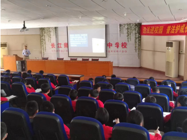 小手拉大手、法治伴我行.4月20日上午,普法志愿者走进长江师范学院附属中学开展知识产权好未成年人保护专题讲座,为该校学生们呈现了一场“有声有色”的沉浸式普法宣讲。