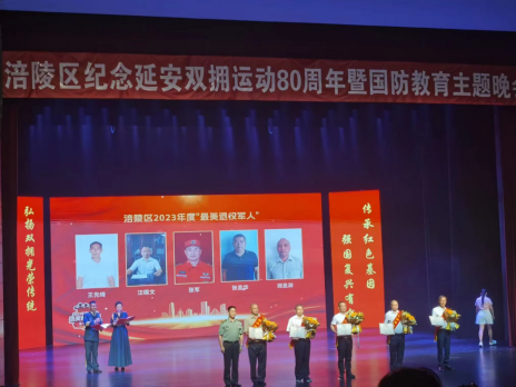 7月27日,由涪陵区委、区政府、区人武部主办的涪陵区纪念延安双拥运动80周年暨国防教育主题晚会在涪陵大剧院举行。来自我区各条战线的五名退役军人获评涪陵区2023年度“最美退役军人”荣誉称号并受到表扬,区司法局离退休人员工作科科长张显华榜上有名。