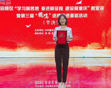 ★◆唐睿思:荣获区“学习新思想 奋进新征程 建设新重庆”微宣讲暨第三届“鹤鸣”送理论进基层活动半决赛三等奖