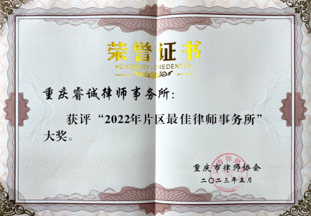 ★7月21日,在第七届重庆律师论坛上,举行了2022年律师和律师事务所年度大奖颁奖仪式,我区睿诚律师事务所荣获“2022年主城新区年度最佳律师事务所”称号。这是睿诚律师事务所第二次揽获年度最佳律师事务所大奖。