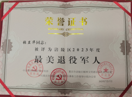 ★◆张显华:荣获涪陵区2023年度“最美退役军人”荣誉称号