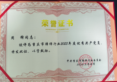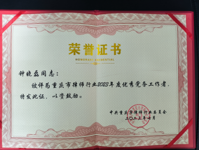 ★7月28日,重庆市律师行业党建工作先进典型表彰会召开,会上,对全市40个先进基层党组织、70名优秀共产党员和40名优秀党务工作者予以表彰。其中,我区新合律师事务所党支部、党员律师周锋、徐浩、党务工作者钟晓磊获此殊荣。