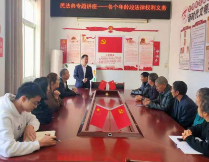 在普法宣讲活动中,五位律师用老百姓听得懂的话语,宣讲老百姓用得上的法律,系统讲解了民法典主要内容,重点普及了家庭婚姻、儿童权益、夫妻共同财产、相邻权、土地承包、新型电信诈骗、防范养老诈骗等法律知识。通过“互动式”、“拉家常式”和群众面对面宣交流、答疑解惑,将晦涩难懂的“法律条款文”转化成土味十足的“大白话”,让群众在“土味”中记住了“法味”。